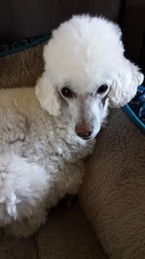 I took Max to the groomer yesterday. I don't think I made myself clear. I wanted no poms, body, legs, tail, etc. shaved with a #7 blade, his ears leathered and his top knot short (about 1"), but not shaved. When I picked him up, his ears were not leathered, but really long and poofy and his top knot was at least 2" long. When I picked him up, I told her I'd wanted his ears short, and so she took him back and cut some length off, but didn't shave them down. I just took him and didn't say anything else. I can't complain much because she trims my small spoo for $60, generally does a really good job and Max loves her.